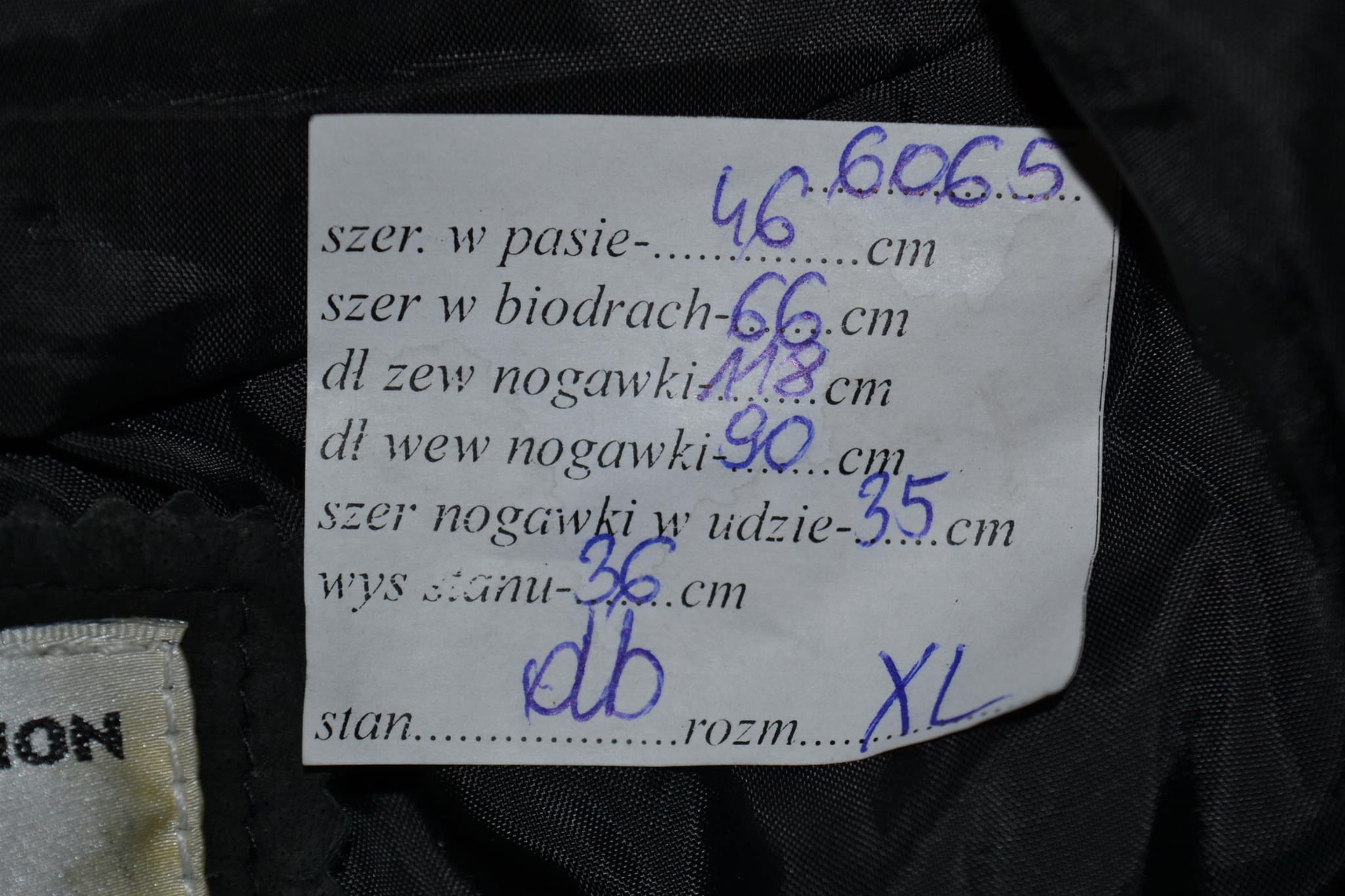 - stan dobry, przetarcie pod kolanem, niewielkie otarcia na elementach skórzanych (foto)