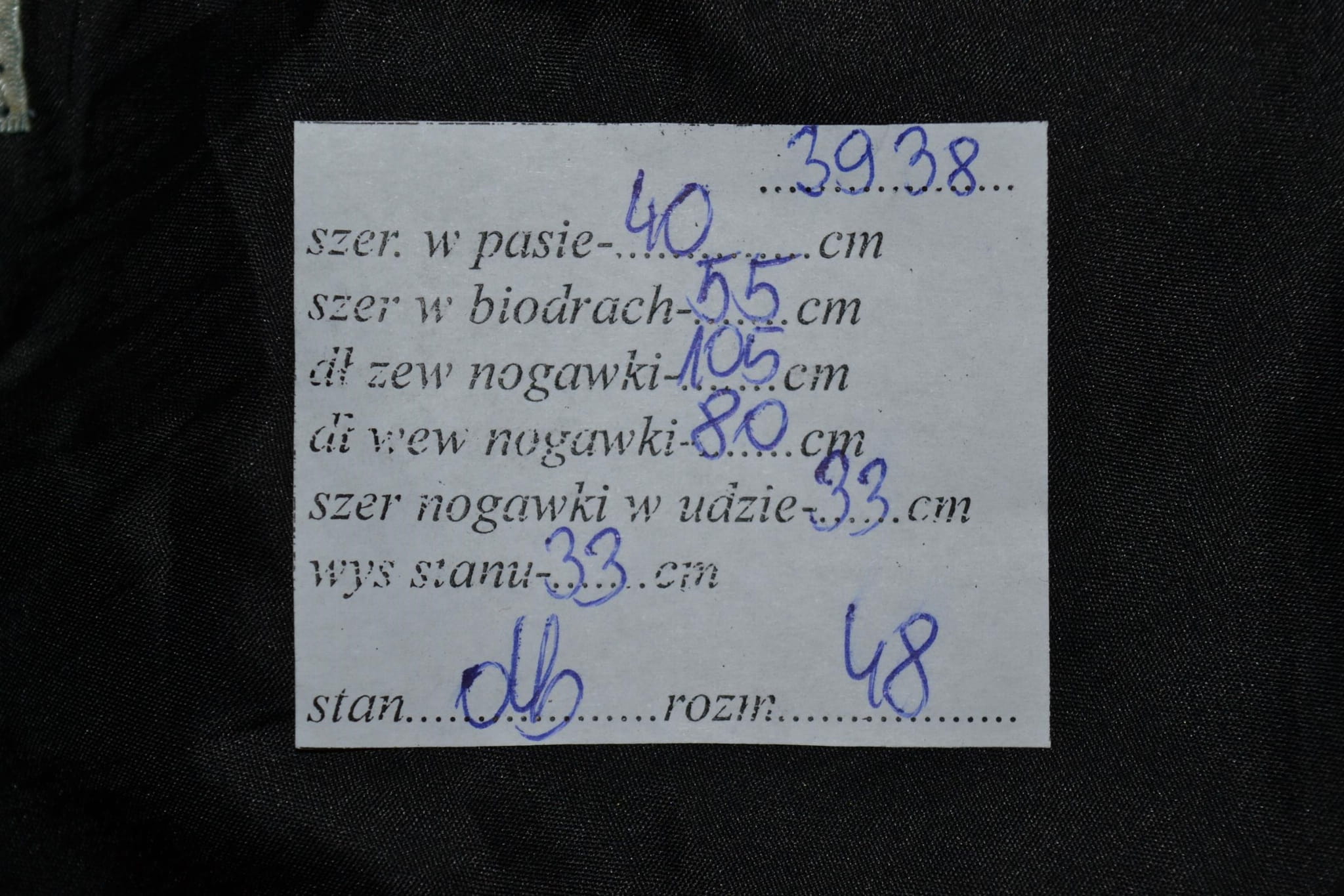- stan dobry, niewielkie przetarcie koloru na dole nogawek (foto)