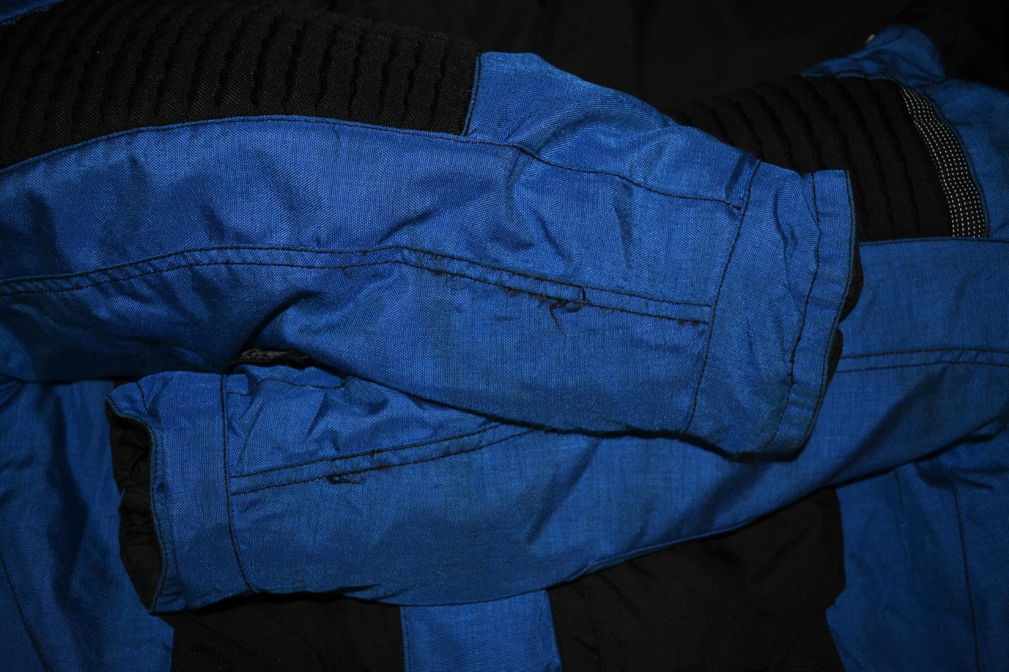 - stan dobry, miejscami niewielkie przebarwienia, brak napa przy zapięciu w pasie (foto)