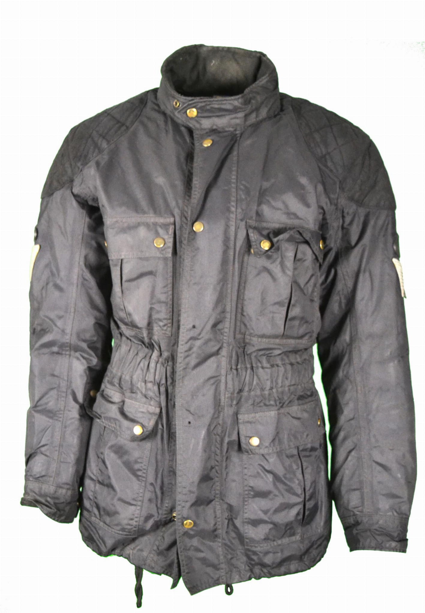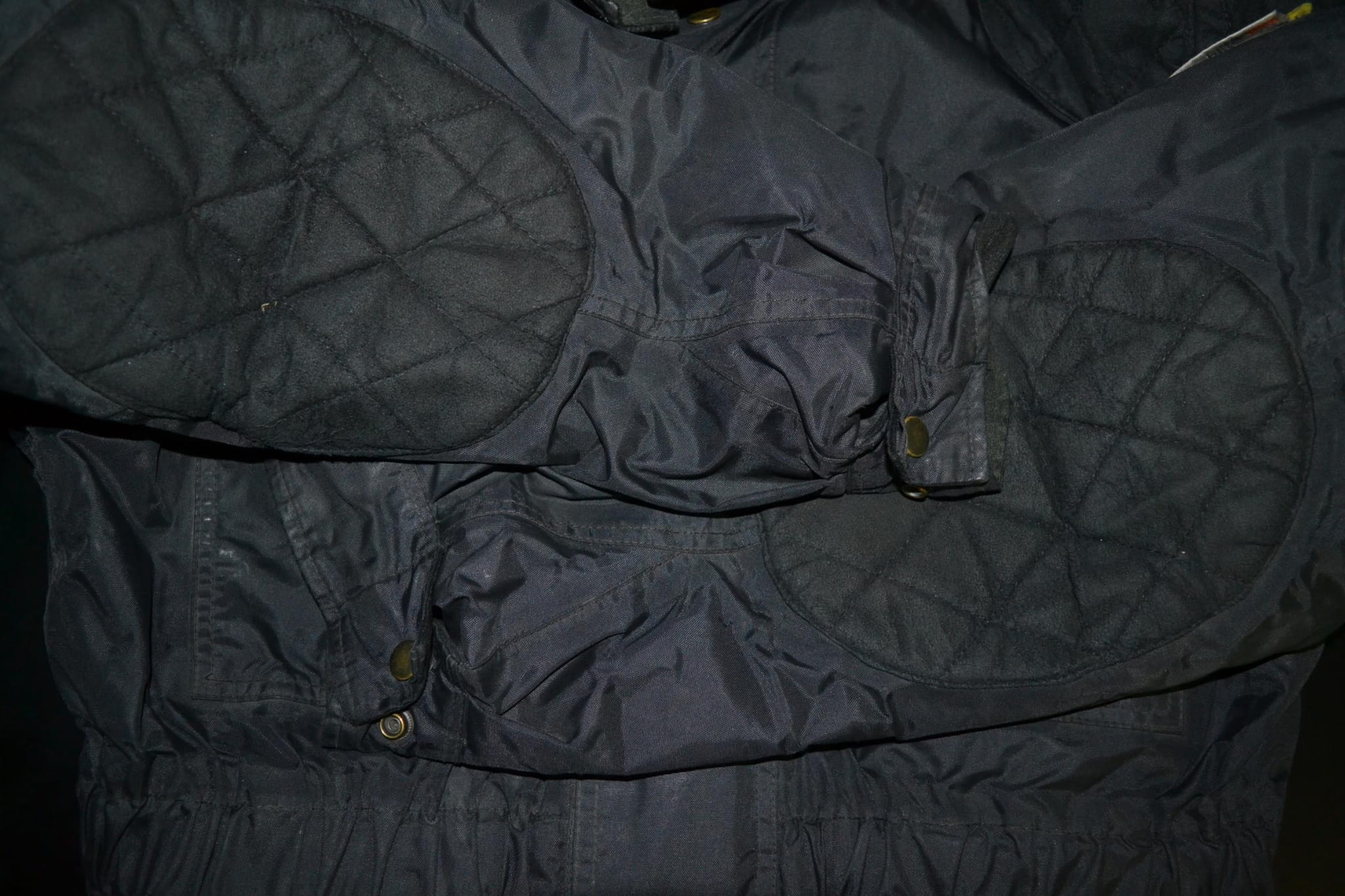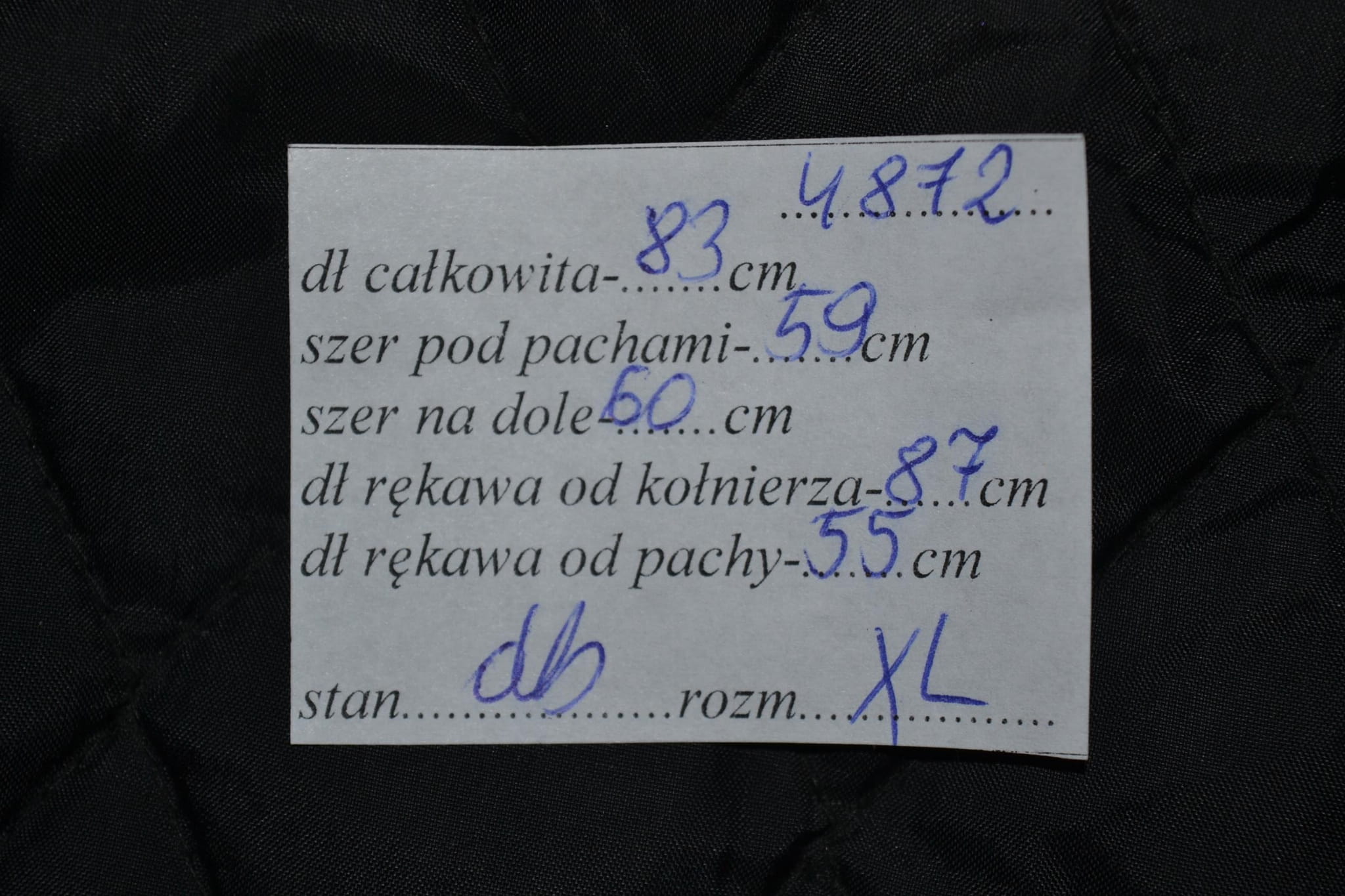 - stan dobry, brak dwóch napów przy zapięciu, niewielkie otarcia na łokciach i ramionach (foto)