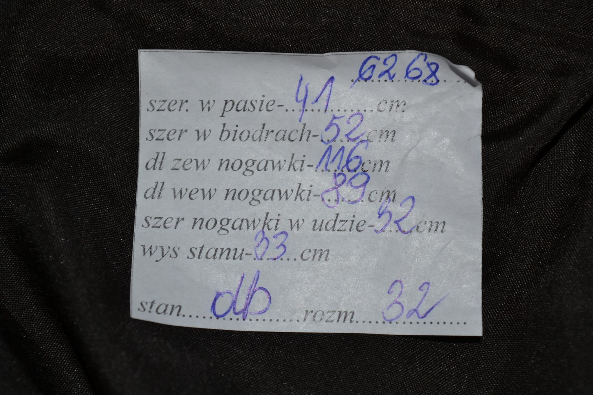 - stan dobry, przybrudzenie na lewej nogawce, miejscami drobne otarcia (foto)
