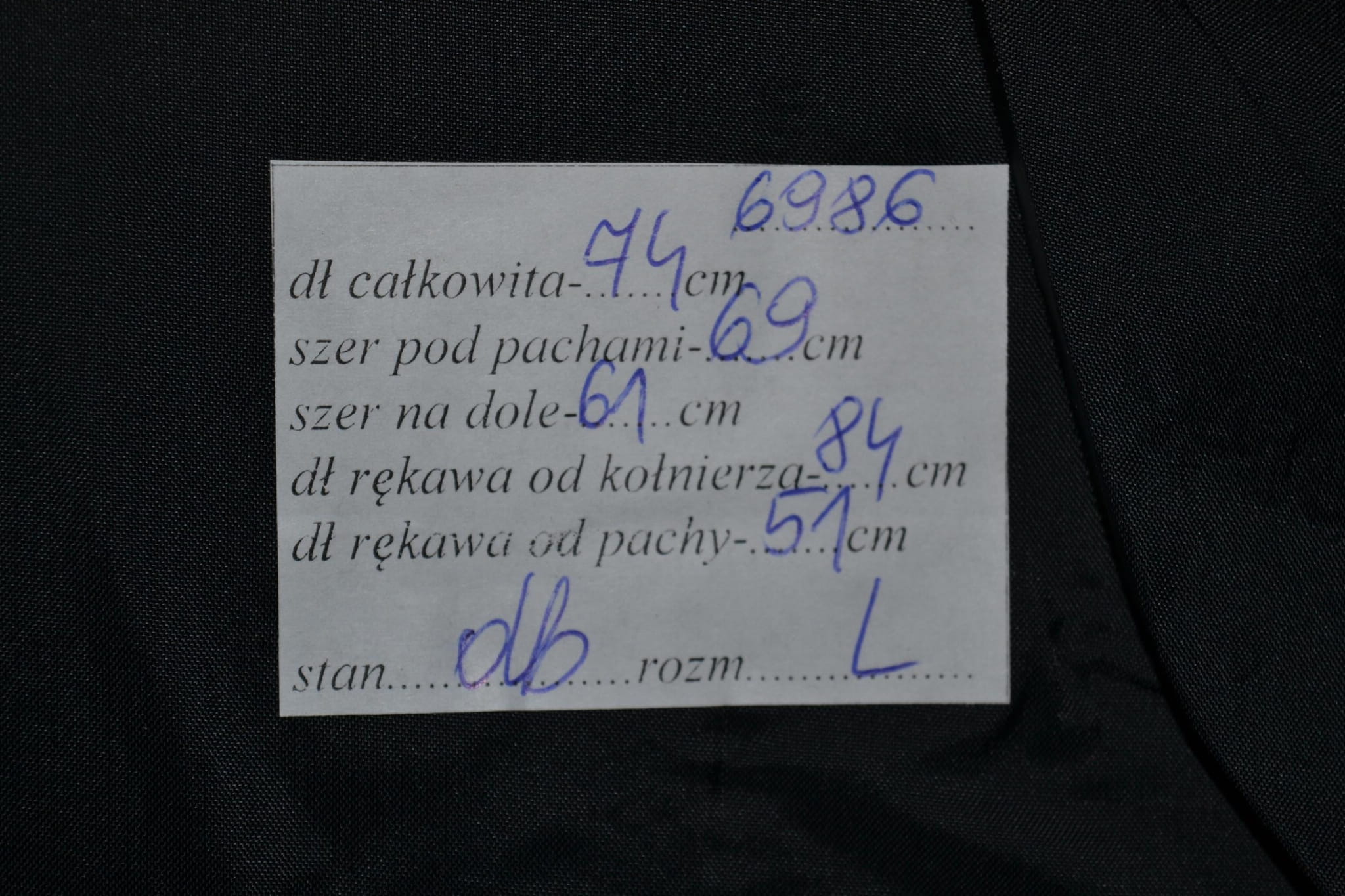 - stan dobry, niewielkie przetarcie i przybrudzenie na lewym mankiecie (foto)