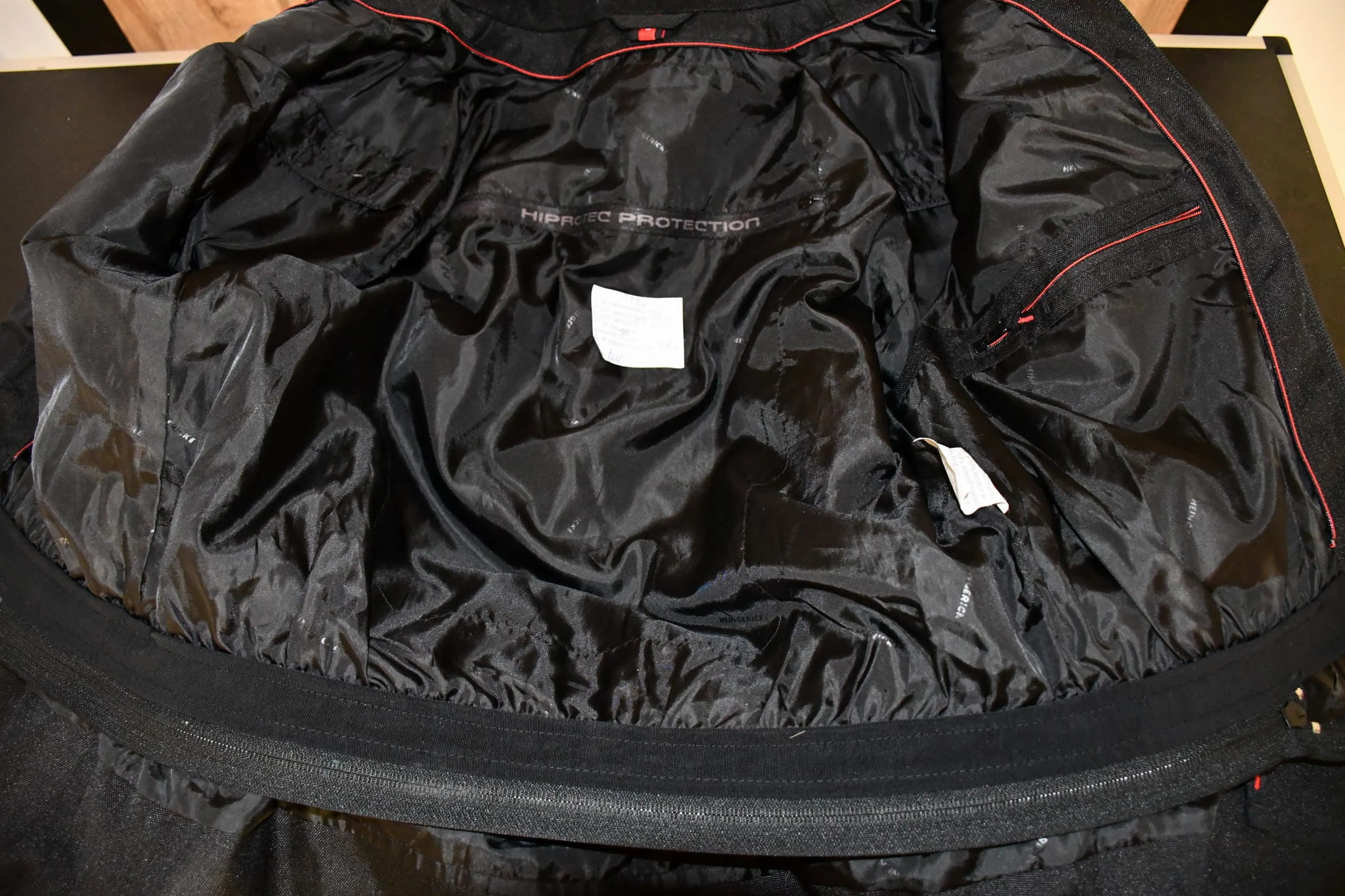 Model wyposażony jest w protektory na łokciach i ramionach oraz kieszeń na protektor pleców. Kurtka posiada jedną kieszeń wewnętrzną i cztery zewnętrzne, zamek do spięcia ze spodniami, a także regulację szerokości w pasie, talii i mankietach. Wentylacja na ramionach poprawia komfort w cieplejsze dni. Brak podpinki ocieplanej.