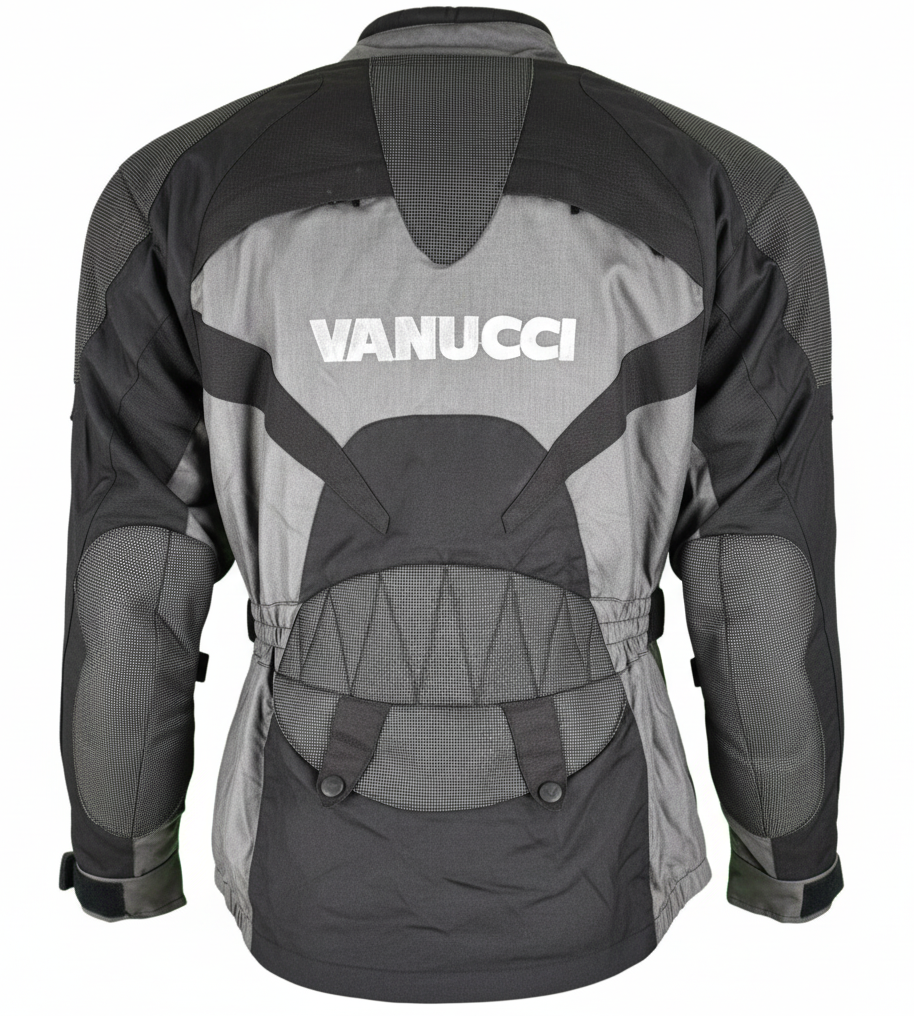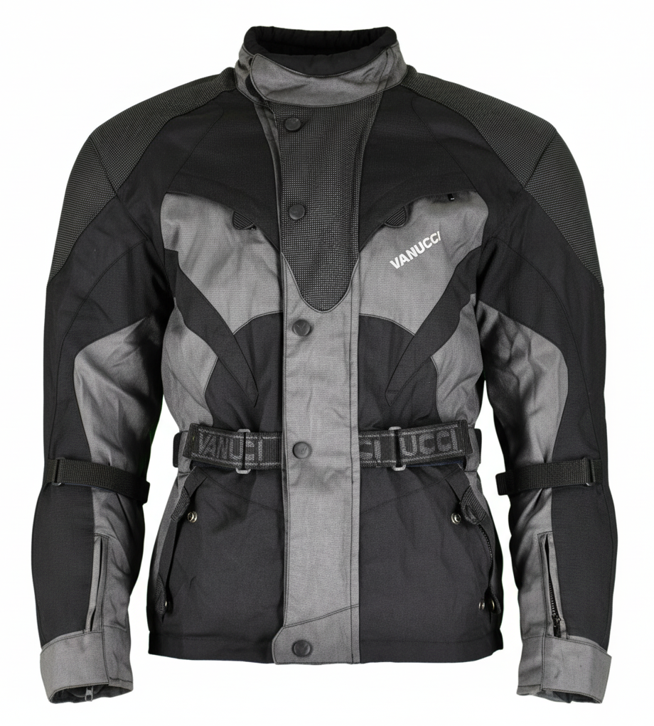 Kurtka motocyklowa Vanucci z protektorami i wentylacją, zapewniająca ochronę oraz komfort użytkowania. Wyposażona w regulację dopasowania i praktyczne kieszenie.