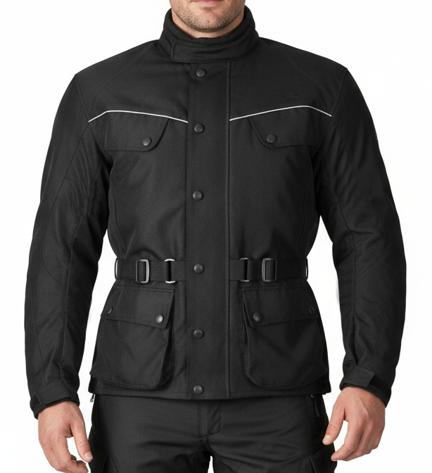 Kurtka motocyklowa Ronley – protektory, regulacjaKurtka motocyklowa Ronley przeznaczona do jazdy miejskiej i turystycznej. Model o klasycznym kroju, wyposażony w elementy zwiększające bezpieczeństwo i możliwość dopasowania do sylwetki. Stan bardzo dobry – zadbana, gotowa do dalszego użytkowania. Najważniejsze cechy• jedna kieszeń wewnętrzna • trzy kieszenie zewnętrzne • regulacja szerokości w pasie i w talii • regulacja szerokości mankietów • protektor na plecach • kieszenie na protektory na łokciach i ramionach • brak podpinki ocieplanej Bezpieczeństwo i funkcjonalnośćKurtka wyposażona w protektor pleców oraz kieszenie umożliwiające montaż ochraniaczy na łokciach i ramionach. Regulacja w pasie, talii i mankietach pozwala na lepsze dopasowanie do sylwetki i pozycji podczas jazdy. Model odpowiedni do jazdy w cieplejszych warunkach lub z dodatkową warstwą pod spodem. Stan• stan bardzo dobry • zadbana • elementy funkcjonalne sprawne | |