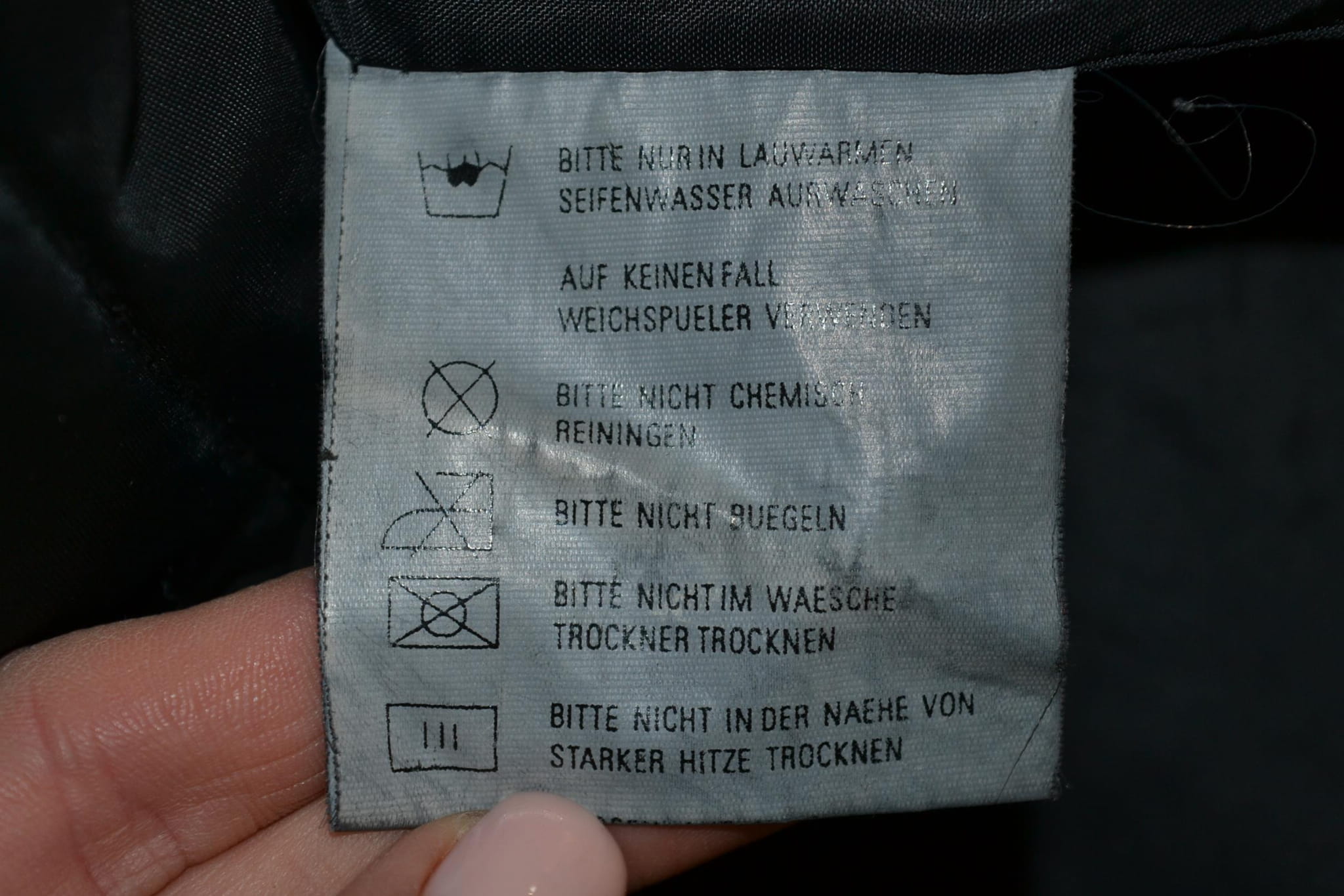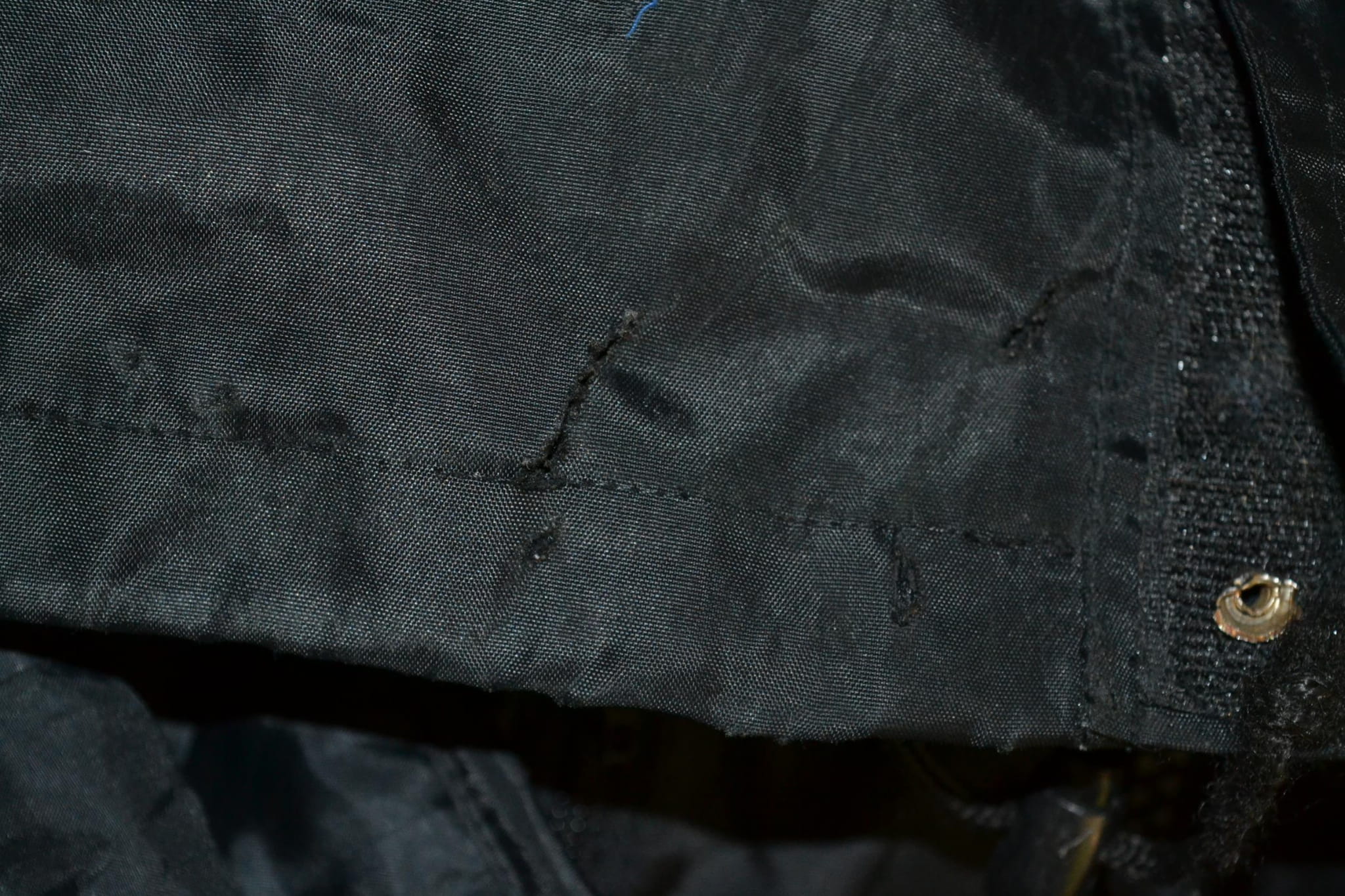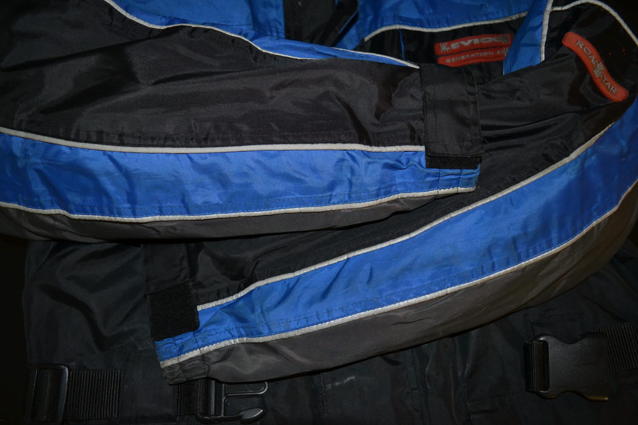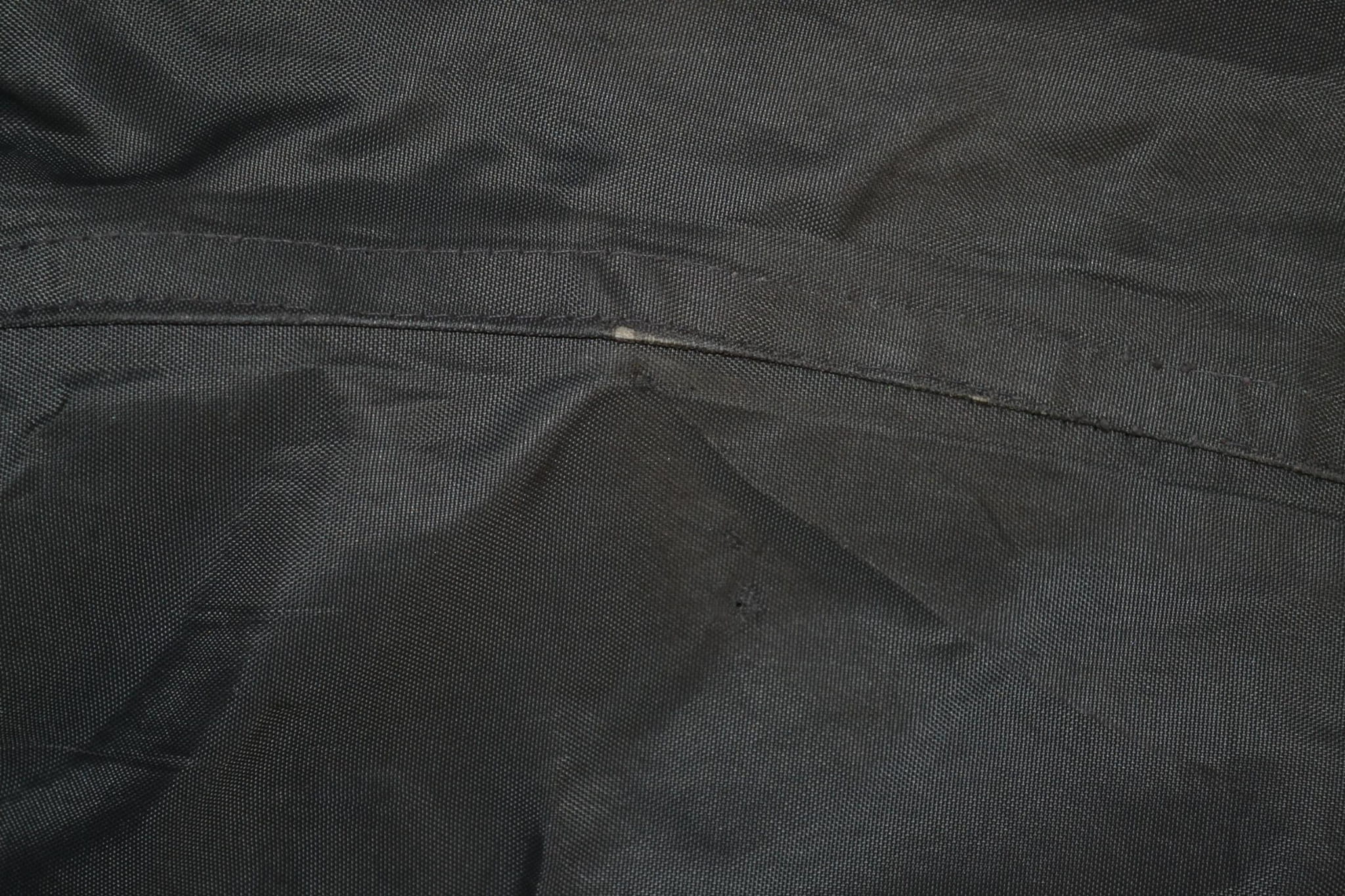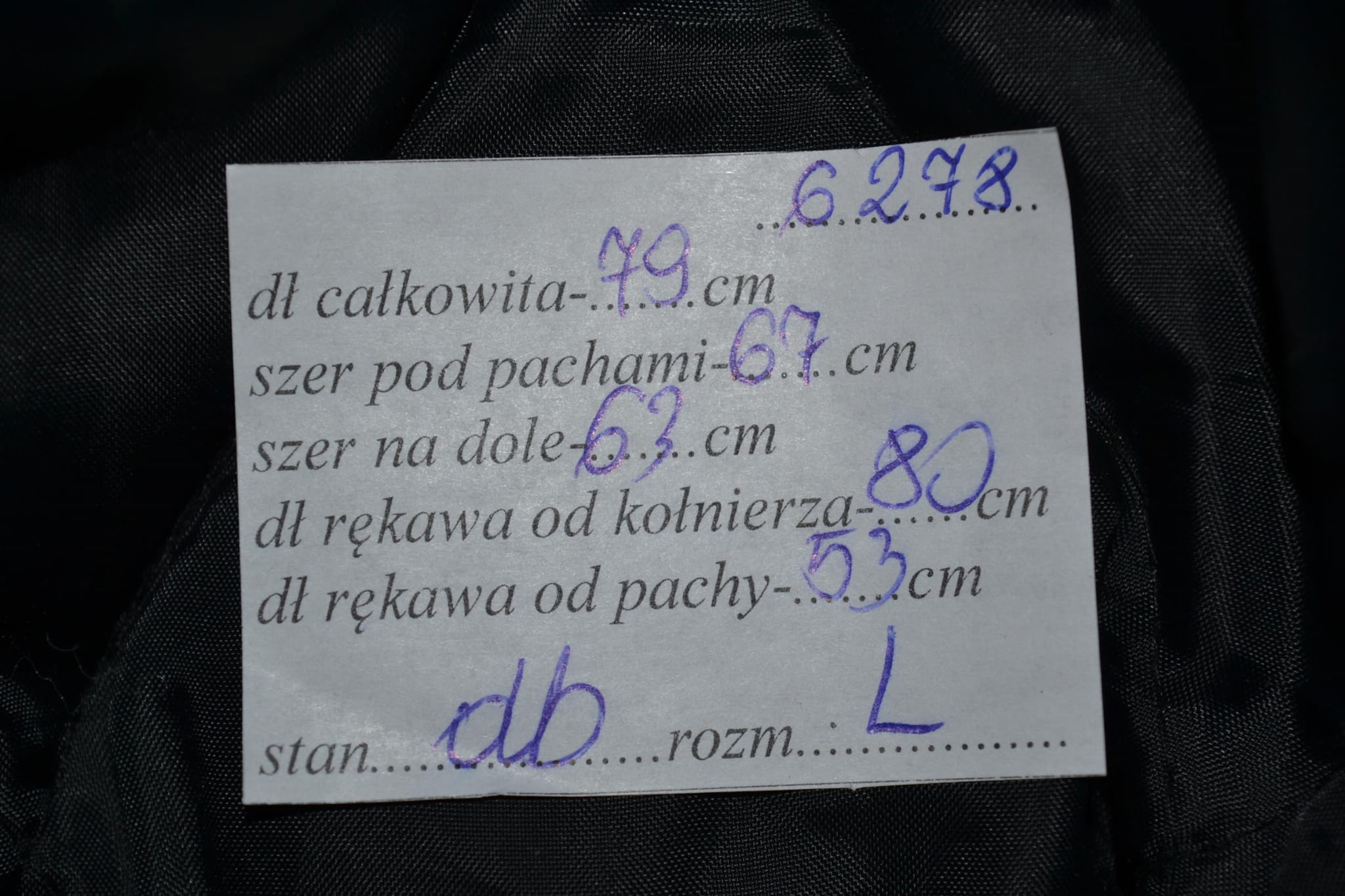 - stan dobry, miejscami drobne przybrudzenia, otarcia na mankietach, cztery dziurki z przodu w pasie, uszkodzony jeden nap przy zapięciu (foto)