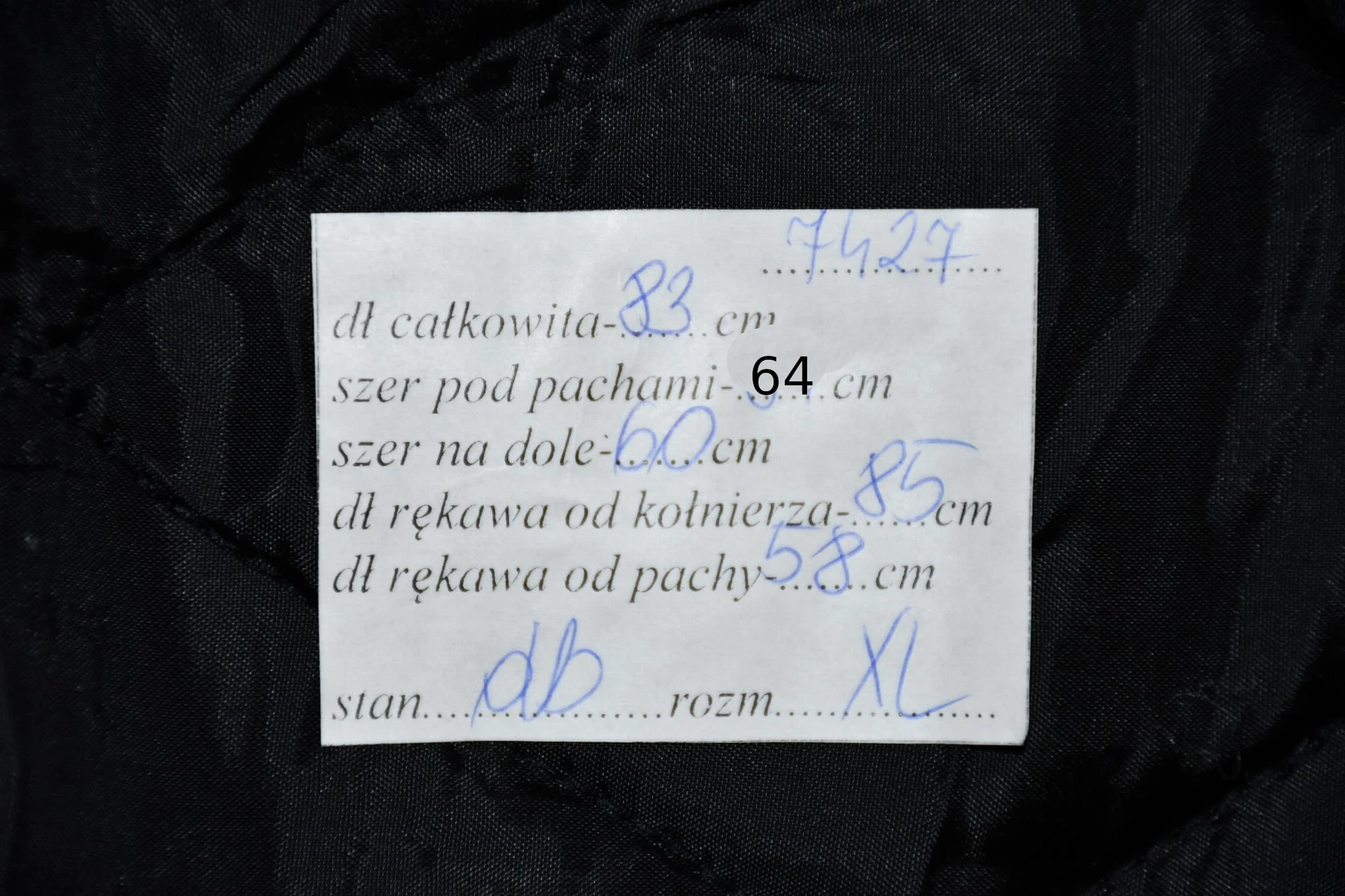 - stan dobry, przedarcie na prawym mankiecie (foto)