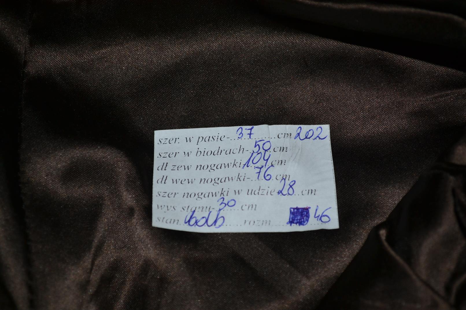 - szerokość nogawki w udzie mierzona jest na wysokości kroku