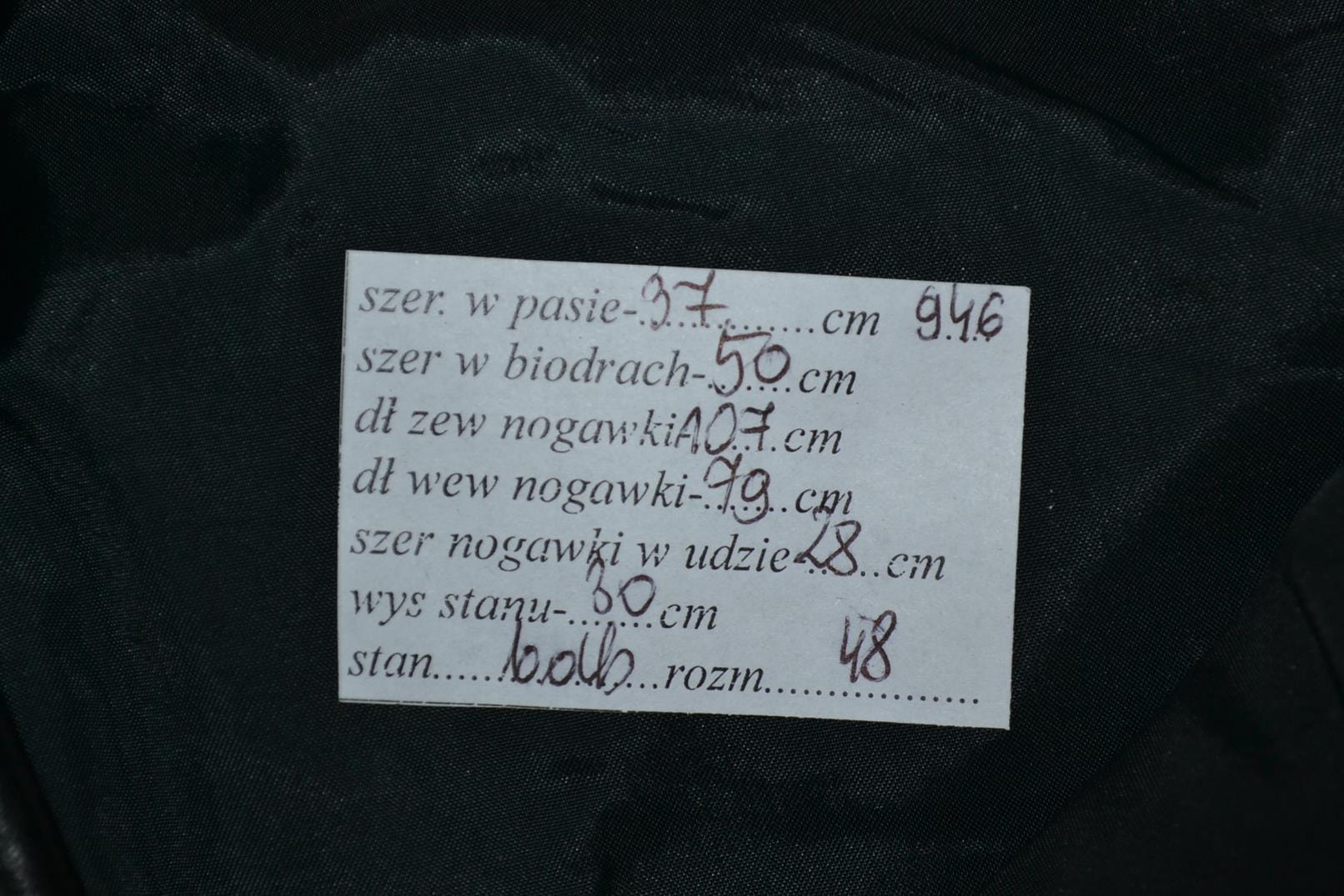 - szerokość nogawki w udzie mierzona jest na wysokości kroku