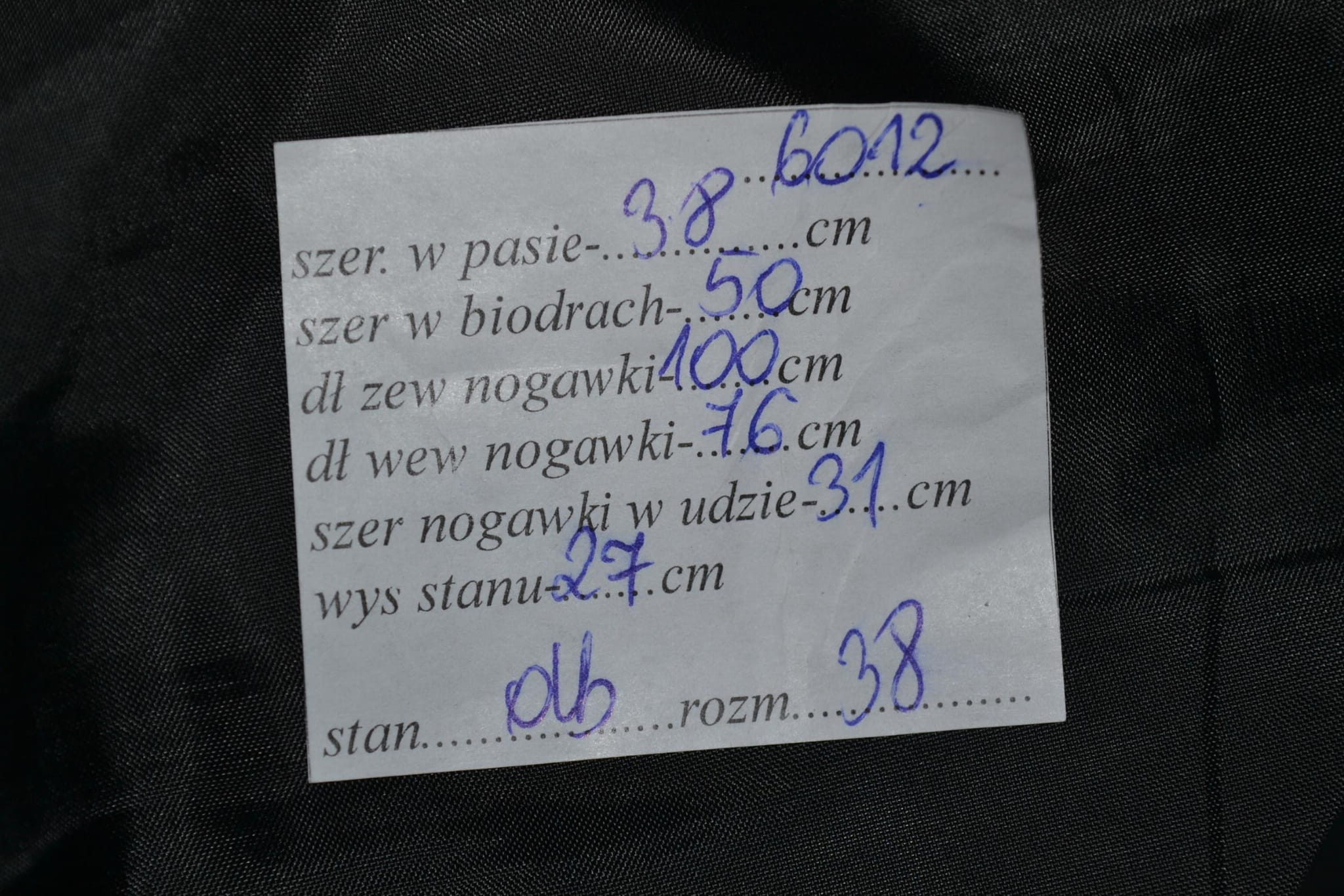 - stan dobry, niewielkie otarcia na dole nogawek i przy prawej kieszeni (foto)