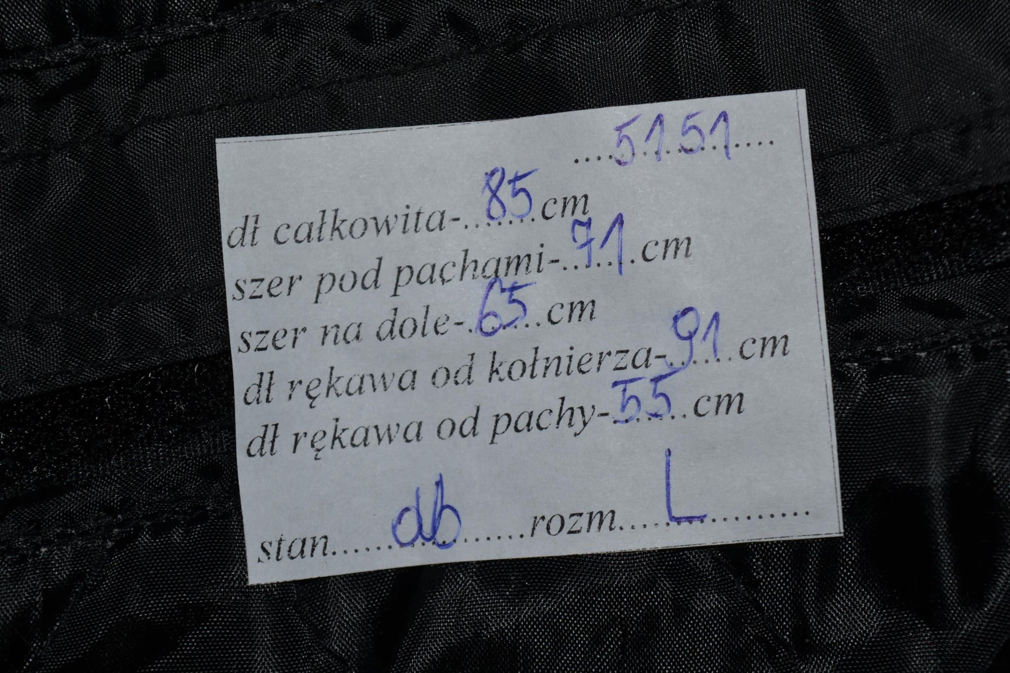 - stan dobry, uszkodzona zawieszka do suwaka przy zapięciu, przybrudzenia na jasnych elementach (foto)