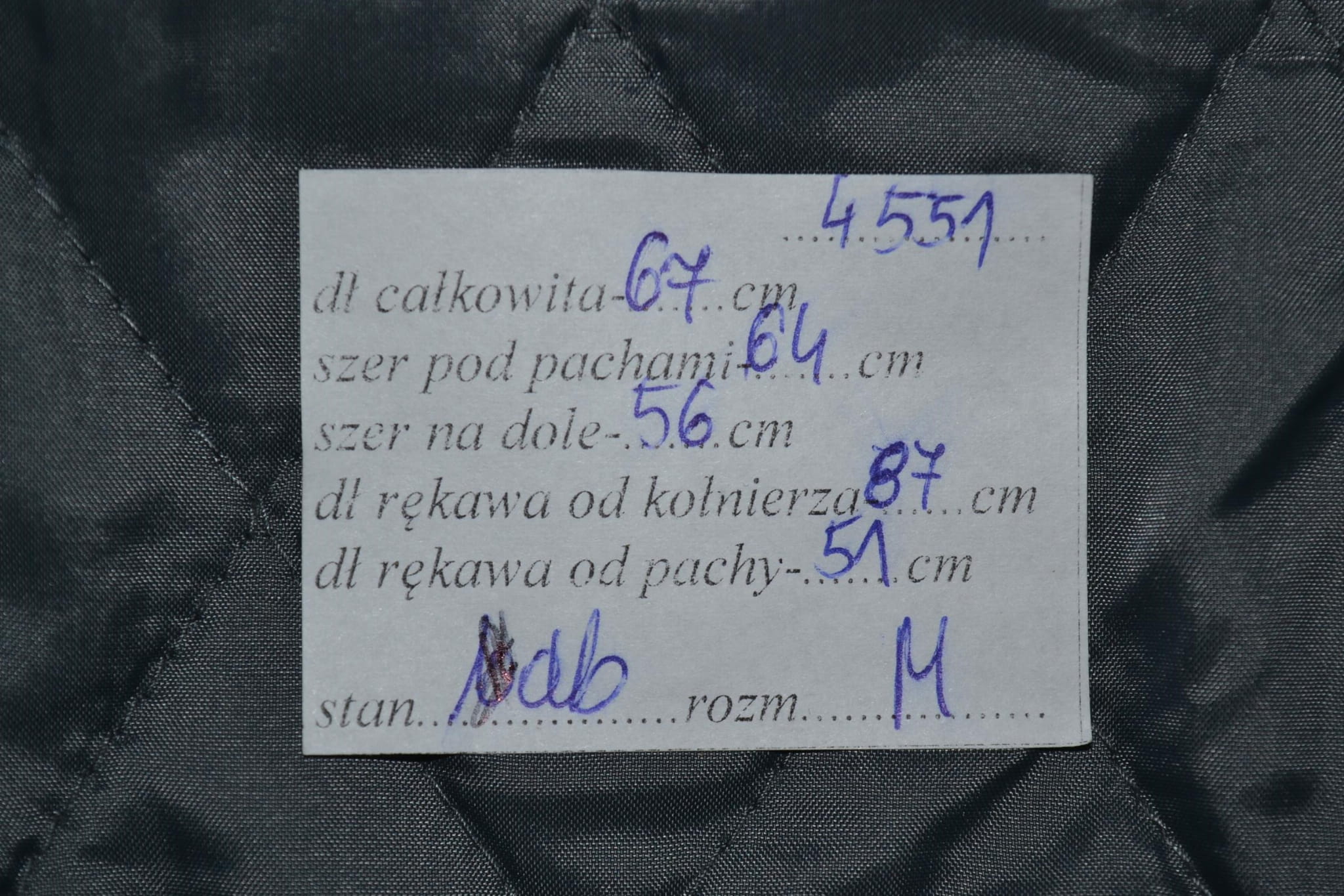 - stan dobry, przytopienie materiału na lewym rękawie (foto)